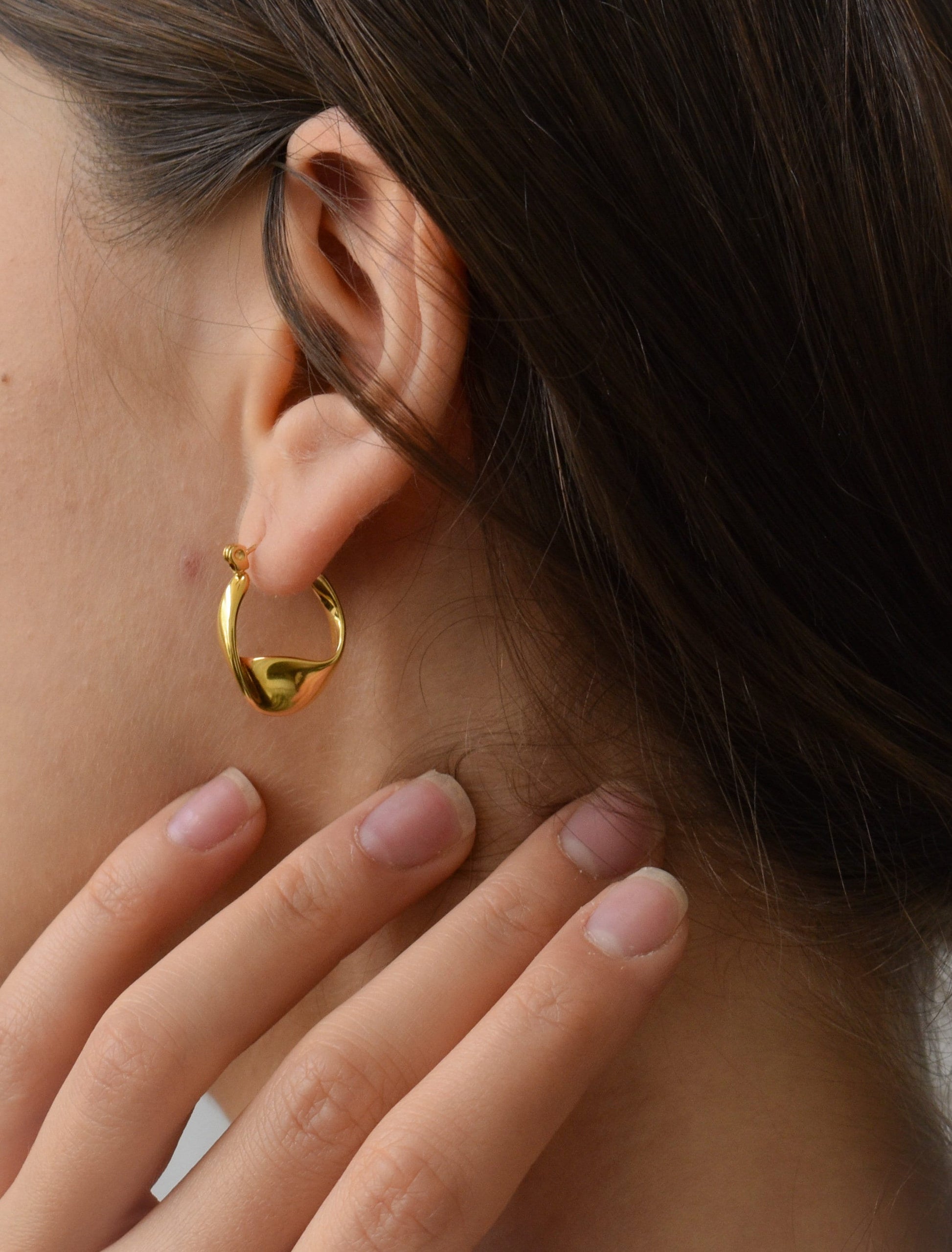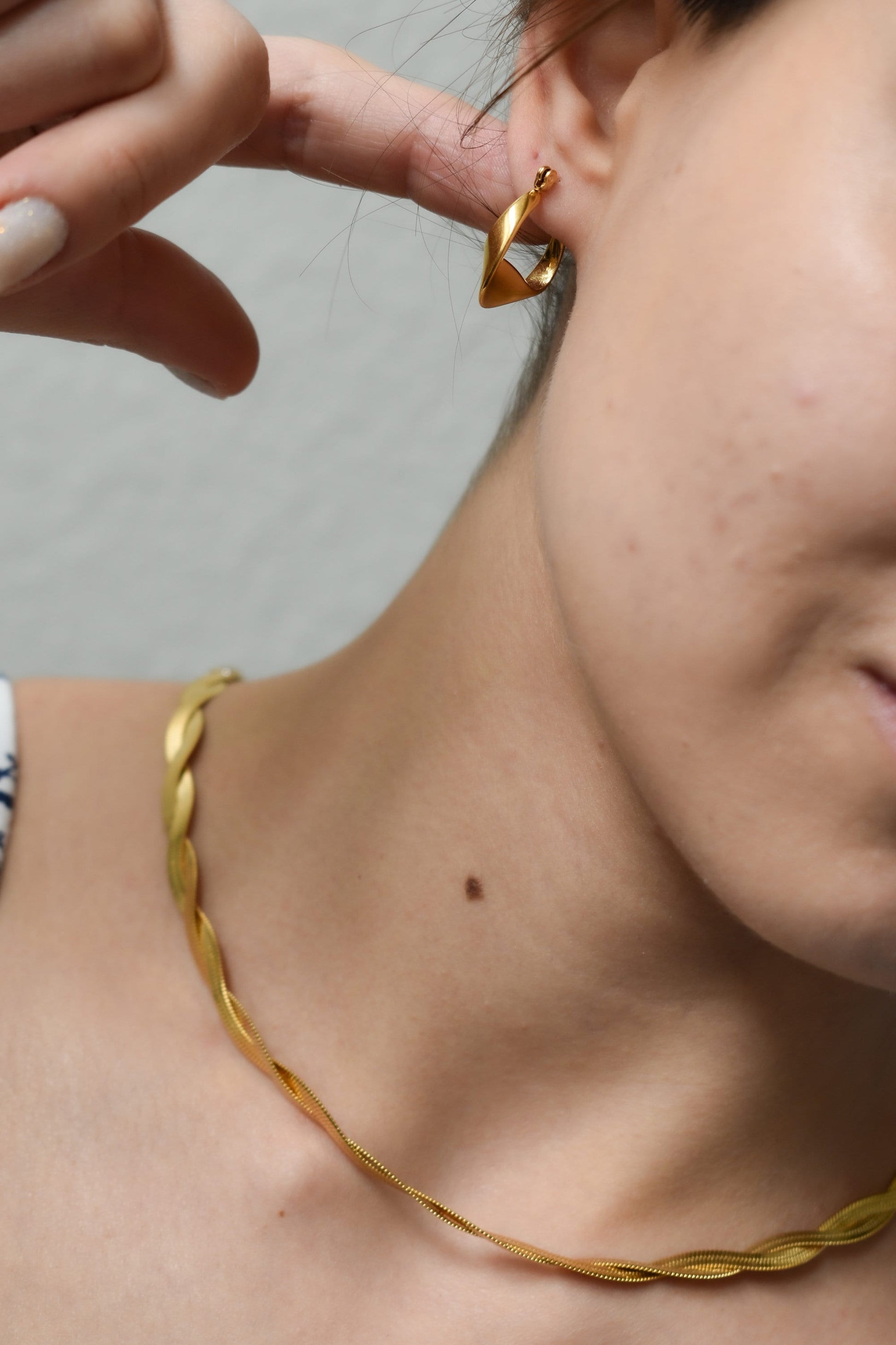 👉You will receive one of two style pair of earrings, that are twisted in shape. ~1" = 25mm in diameter. Both Styles are minimalist elegant hoop earrings. There is an option to purchase the herringbone chain that combines so well together.