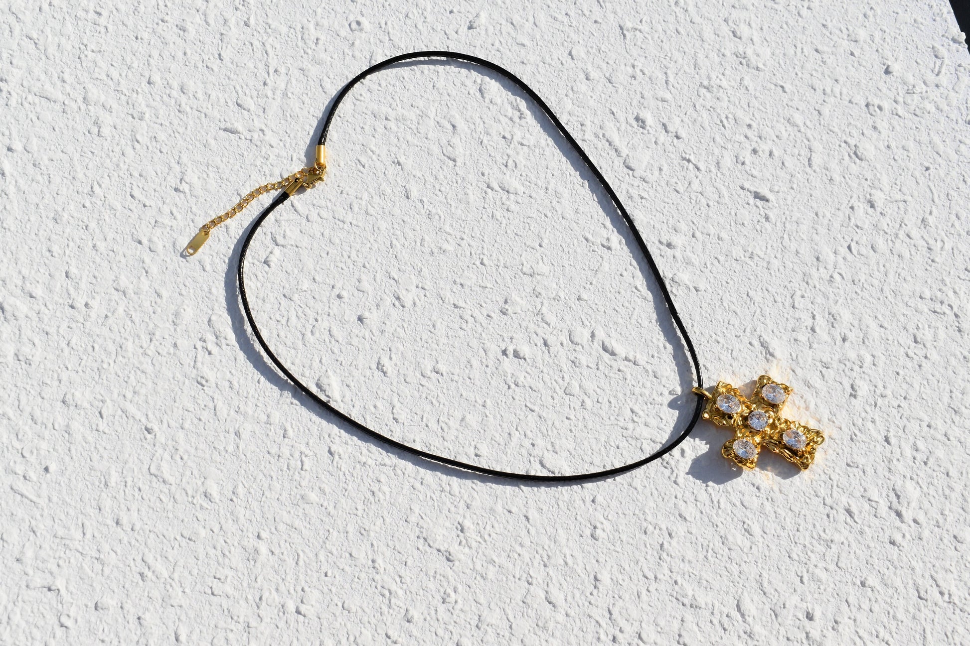 Large Cross Necklace - Leather Chain Couples Cross Necklaces Thick Gold Silver Cross Black Leather Boho Elegant Waterproof Mens His Necklace